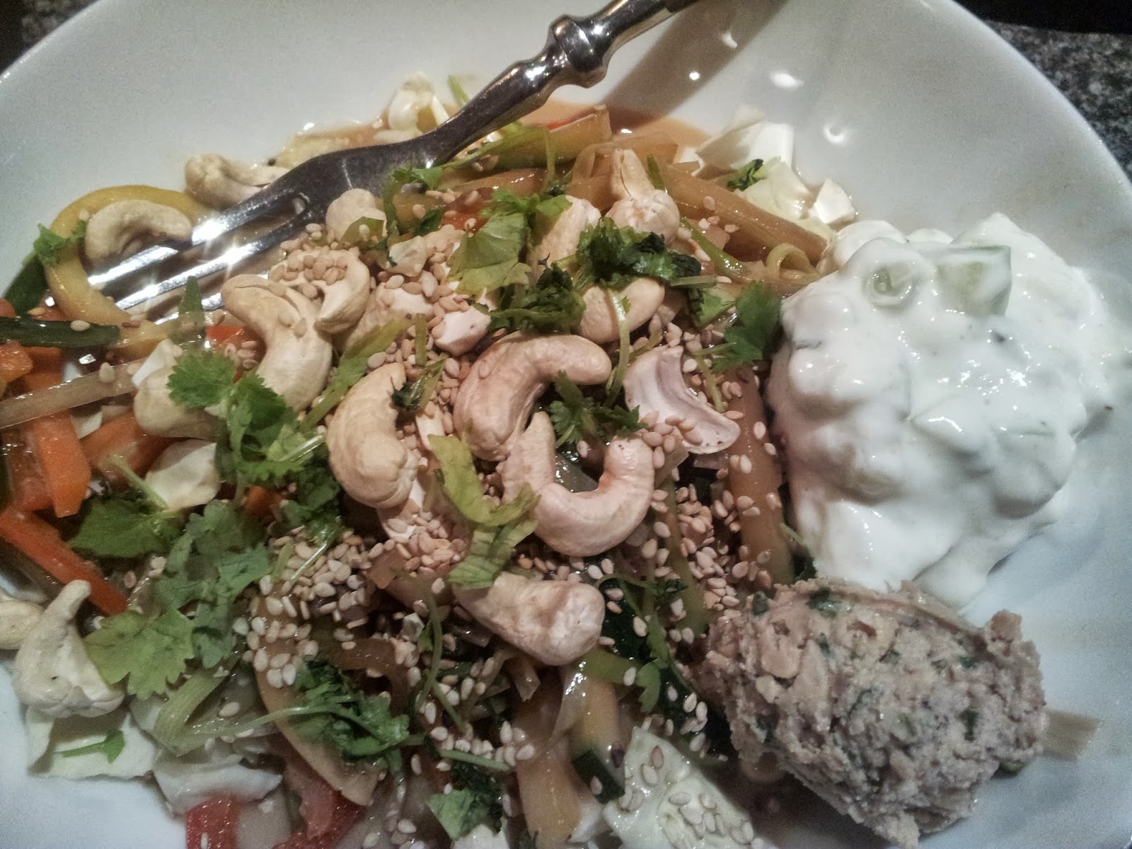 Serveret med sprødstegt kalkunbacon, friturestegte pastinakchips, revet parmesan og soyacuisine.